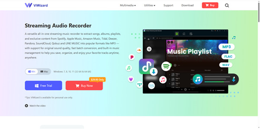 ViWizard is a desktop software that acts as a virtual audio capture device. It doesn’t hack or break Apple Music’s encryption. Instead, just a few steps away, ViWizard can easily capture audio from popular music streaming platforms, such as Apple Music, Spotify, Pandora, and more.. This method ensures you get the best possible sound quality without any legal infringement for personal use.